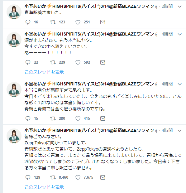 【悲報】アイドル「青梅だと思ったら青海に来てしまったのでライブ出られなくなりました」