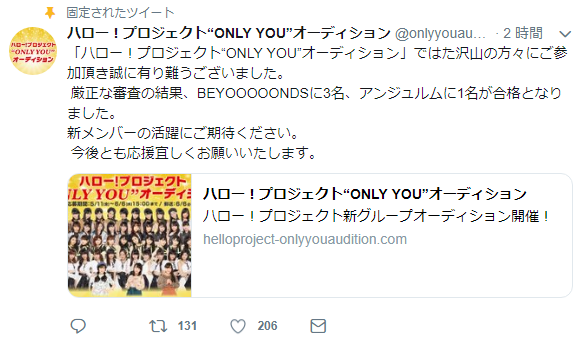 ハロープロジェクトONLY YOUオーディション終了のお知らせ