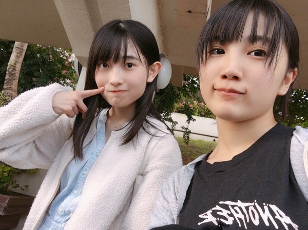 ロケ地到着してすぐのやなふなすっぴんだからか、幼い