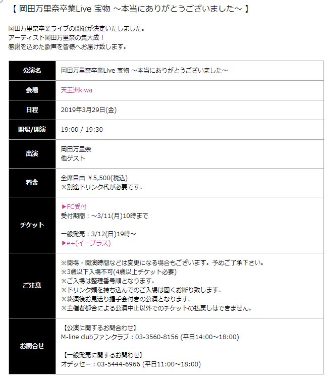 「岡田万里奈卒業Live 宝物 ~本当にありがとうございました~」