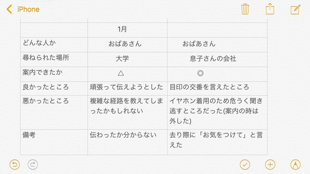 どういう対応をしたか、など…参考までに1月分の案内表を載せますね⬇︎