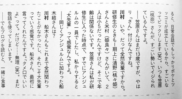【アンジュルム】川村文乃「笠原さんは先輩ですからさん付けです。大先輩の船木さんはタメ口でいいと言われたけど敬語使います」