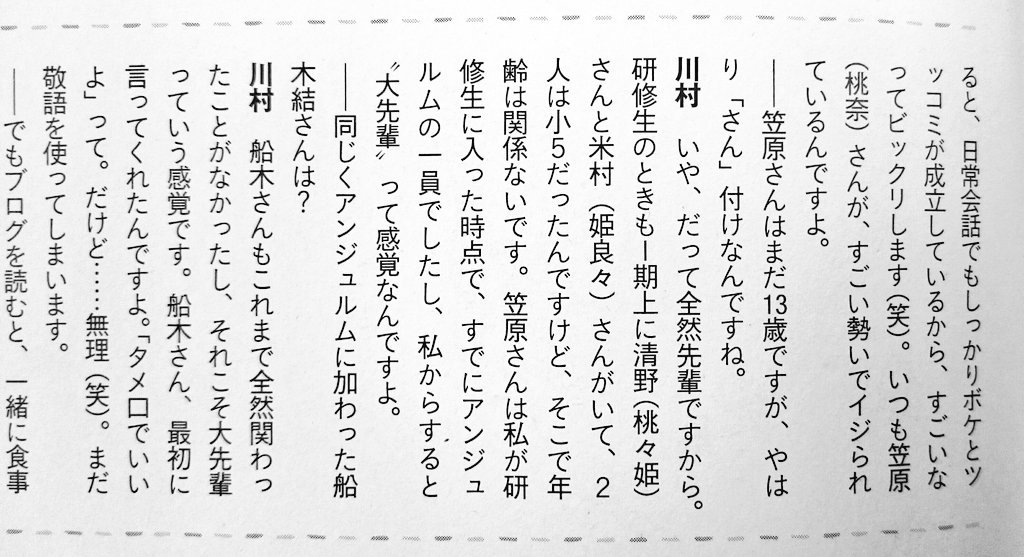 アンジュルム川村文乃「笠原さんは先輩ですからさん付けです。大先輩の船木さんはタメ口でいいと言われたけど敬語使います」