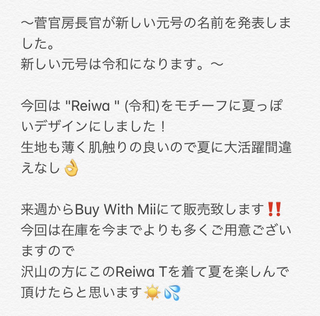 萩原まいまいが令和Tシャツつくったよ 買ってね4,320円