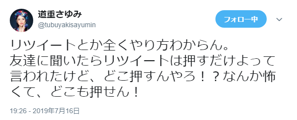 リツイートとか全くやり方わからん。