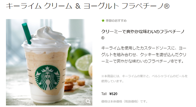 キーライム クリーム & ヨーグルト フラペチーノ