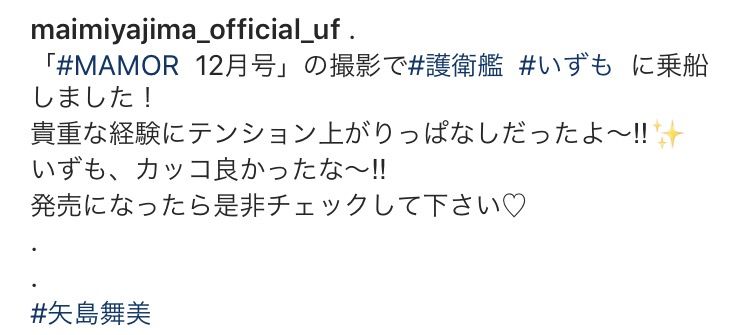 【朗報】矢島舞美さん、自衛隊広報雑誌MAMOR(マモル)の撮影で護衛艦いずもに乗船