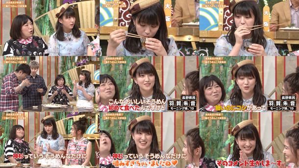 三輪そうめんを食べる羽賀あかねちん(17)と黒沢かずこ(40)
