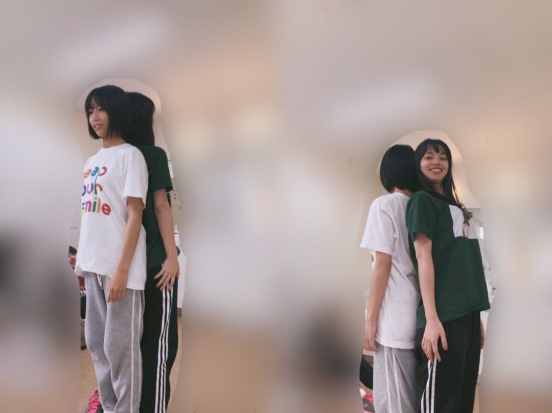 かみとりんちゃんが背比べを
