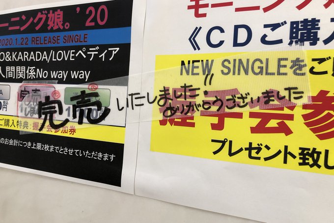 【モーニング娘。’20】サンシャインシティ噴水広場でのミニライブ&握手会、CD完売となりました!ありがとうございます!何卒ご了承下さい。 #morningmusume20 #モーニング娘20 pic.twitter.com/3y1sz7gy1V