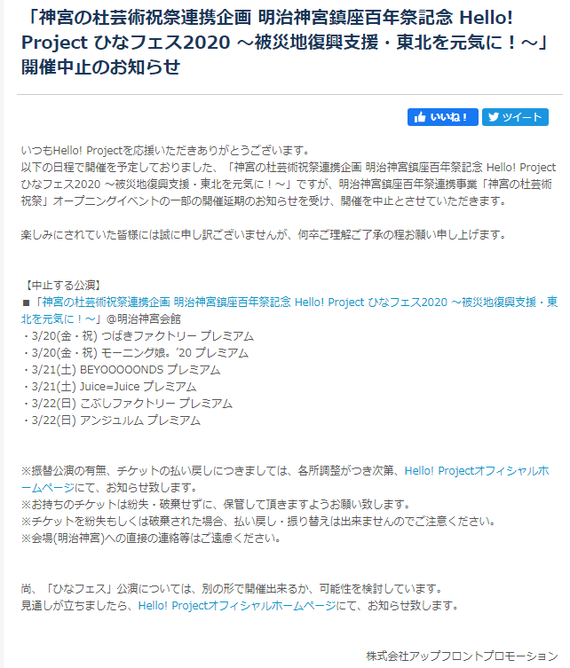 ひなフェス中止