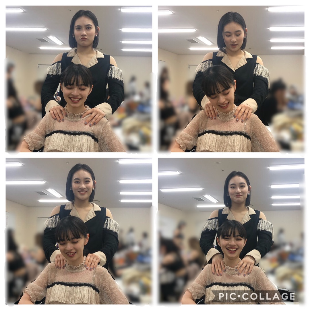 こぶしファクトリー野村みな美「佐々木莉佳子ちゃんと上國料萌衣ちゃんの戯れ。笑笑 肩揉んであげてました〜」