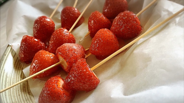 いちご飴作ってみましたー見た目はいいじゃない?