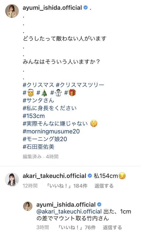 モーニング娘。石田亜佑美とアンジュルム竹内朱莉がインスタコメント欄で口論勃発?