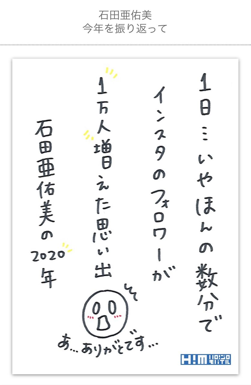 【モーニング娘。'20】石田亜佑美さん今年を振り返る「インスタのフォロワーが数分で1万人増えたwww」