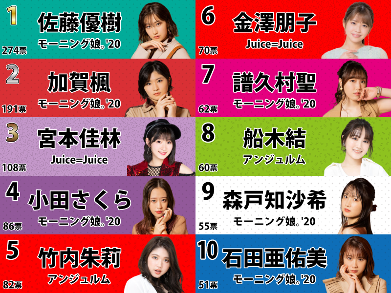 10位 *51票 石田亜佑美 100 -49 51%
