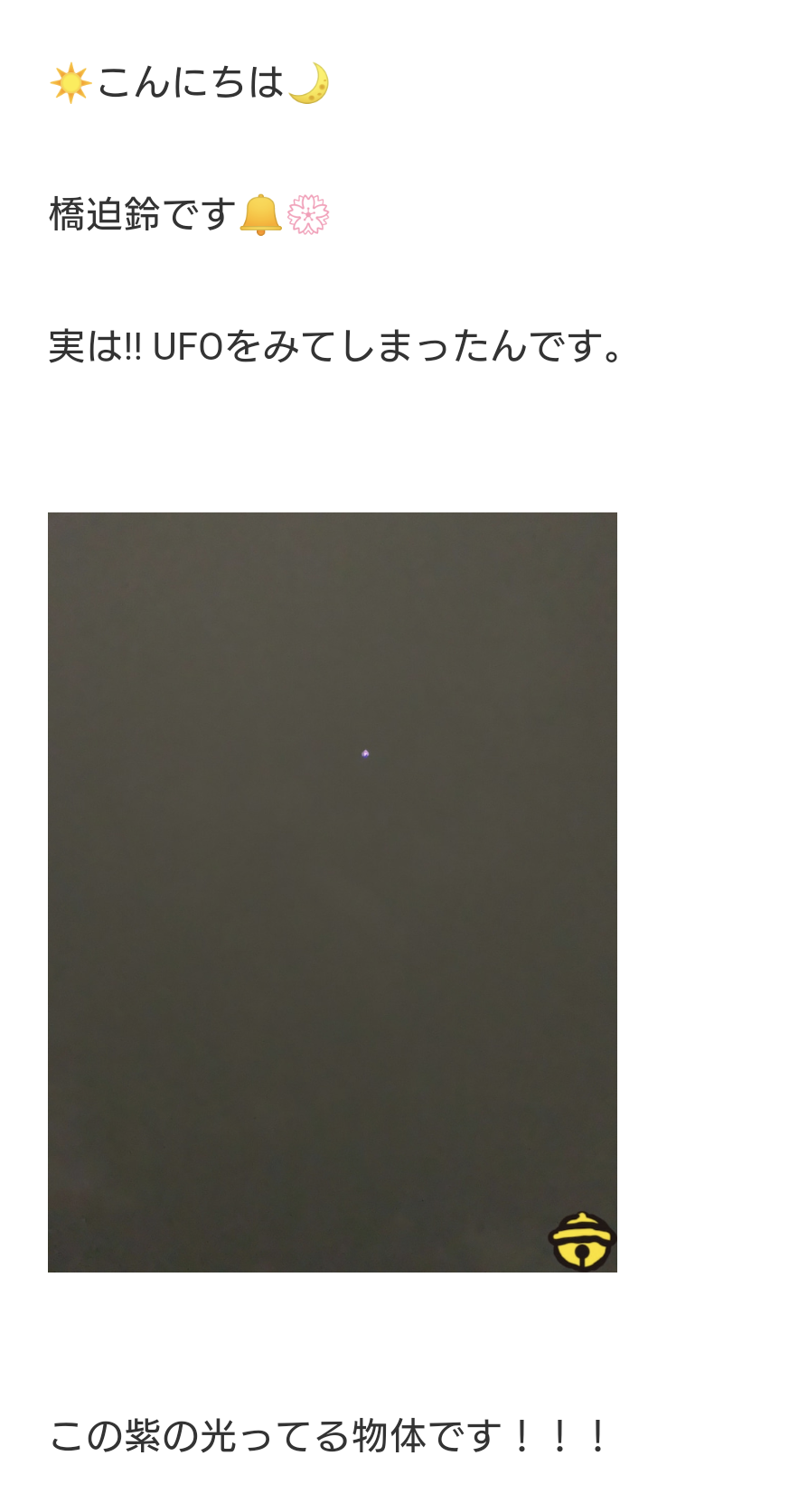 橋迫鈴ちゃんがUFOに遭遇