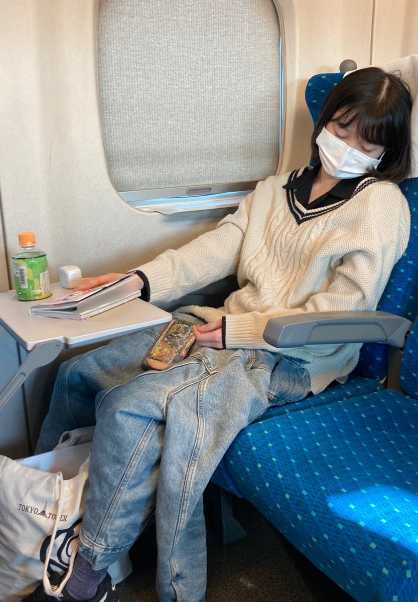 スタッフに新幹線で熟睡しているところを撮影される宮本佳林ちゃんさん