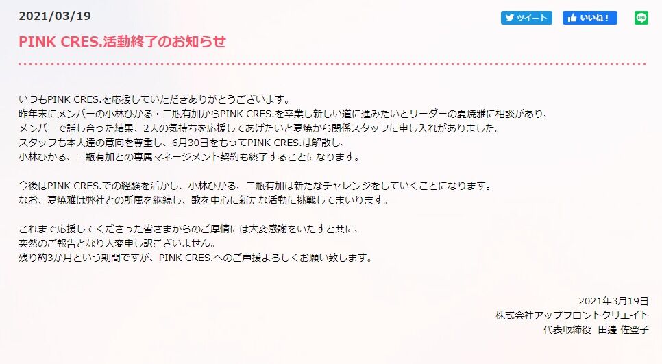 PINK CRES.活動終了のお知らせ