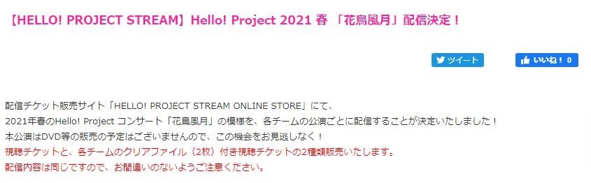 2021年春のHello! Project コンサート「花鳥風月」の模様を、各チームの公演ごとに配信することが決定いたしました!