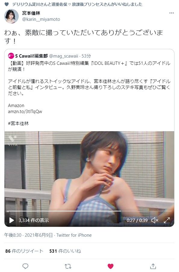 — 宮本佳林 (@karin__miyamoto) June 9, 2021