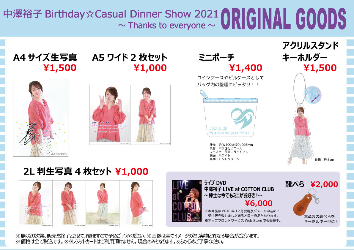 「中澤裕子Birthday☆Casual Dinner Show 2021~Thanks to everyone~」グッズ先行販売のお知らせ!