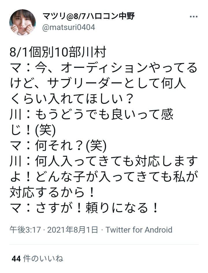 投稿日 2021年8月4日 07:59:46 (ハロプロまとめトーク)