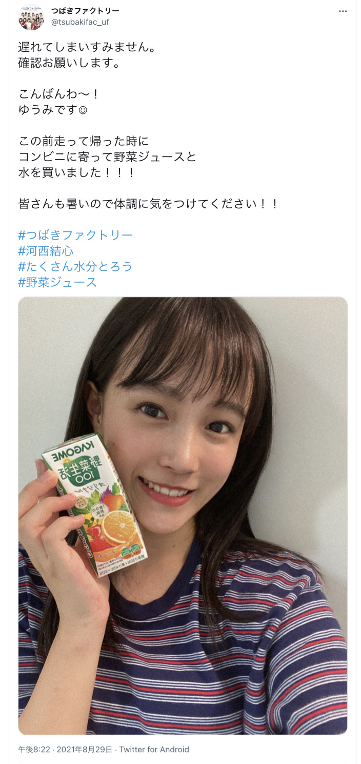 つばきファクトリー河西結心「遅れてしまいすみません。確認お願いします。」