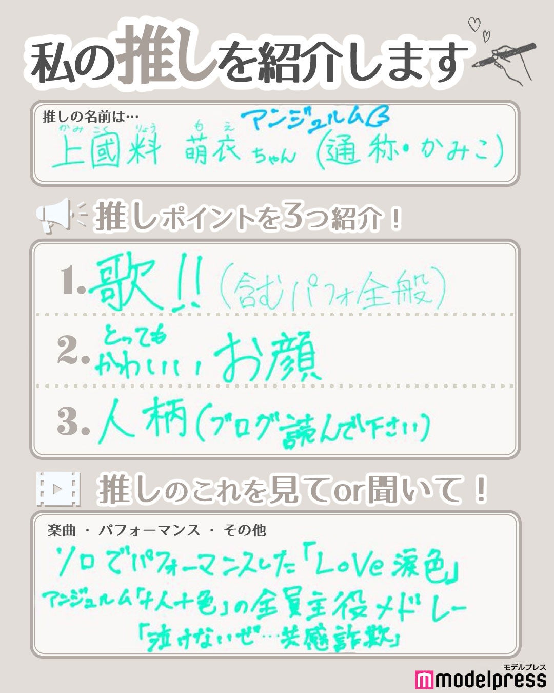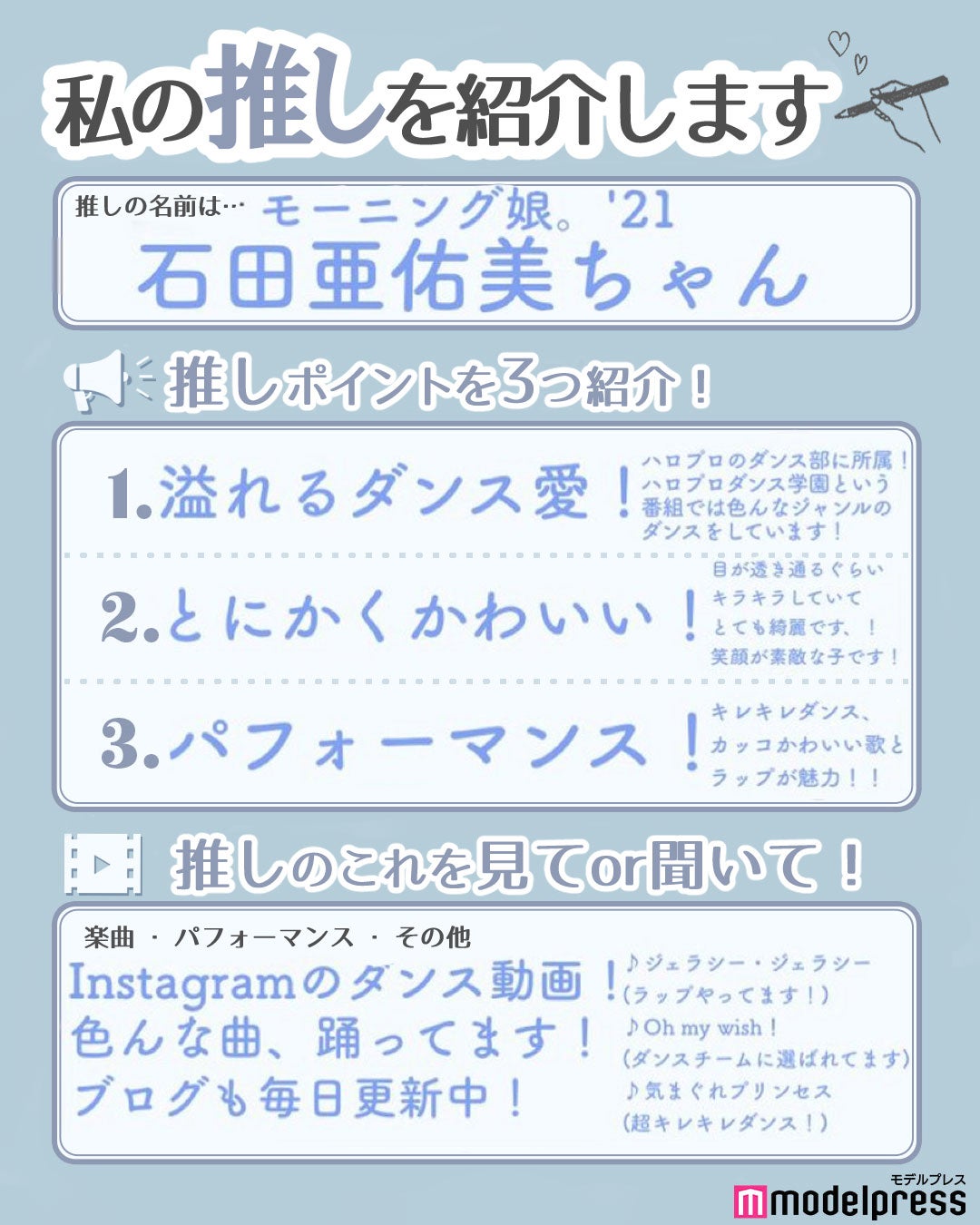 モデルプレスの「#私の推し紹介」読者アンケートにモーニング娘。石田亜佑美、BEYOOOOONDS一岡伶奈、加賀楓、アンジュルム上國料萌衣が 登場 !!