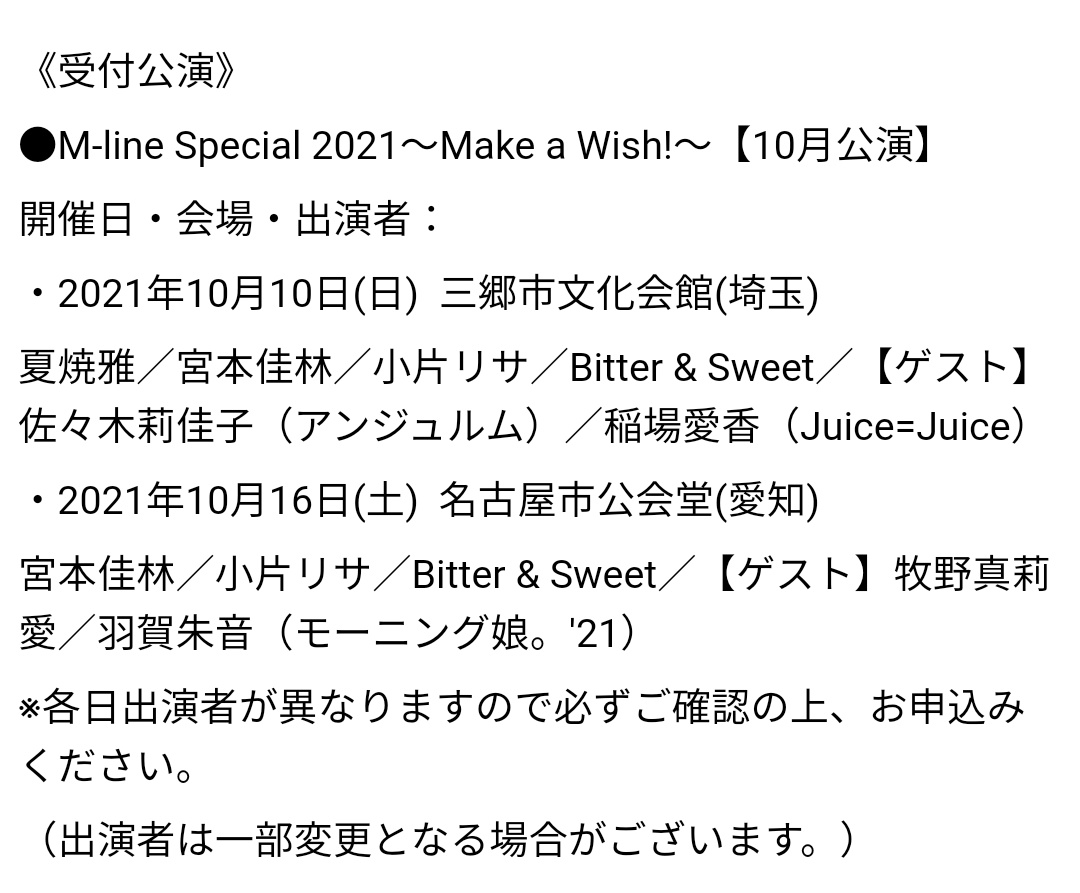 M-lineツアー10月公演にアンジュルム佐々木莉佳子Juice=Juice稲場愛香モーニング娘。牧野真莉愛・羽賀朱音がゲスト出演決定!!