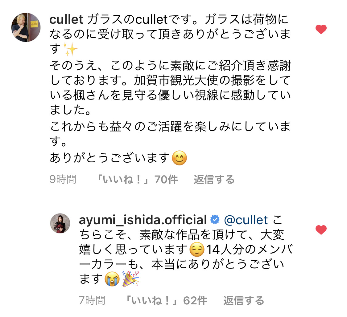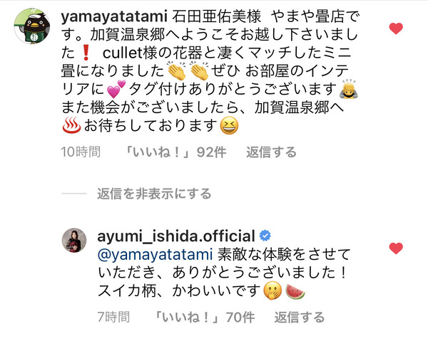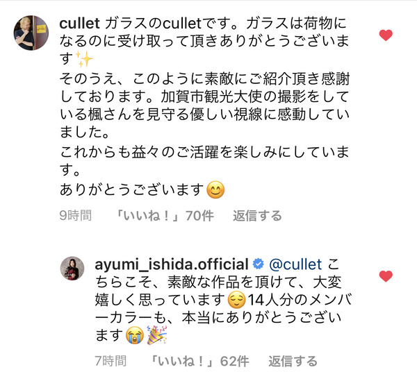 モーニング娘。石田亜佑美、加賀温泉郷で訪れた店からの返信に一つ一つ丁寧に返信する対応が話題
