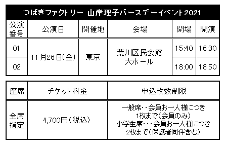 https://www.up-fc.jp/helloproject/news_Info.php?id=18226「つばきファクトリー 山岸理子バースデーイベント2021」の開催が決定いたしました。