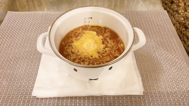 八木栞 『明後日写真載せるって言ったんですけど昨日の夜お腹がすいちゃって味噌バターラーメンを作ってみちゃいました。』