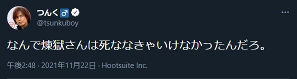 つんく♂「なんで煉獄さんは死ななきゃいけなかったんだろ。」