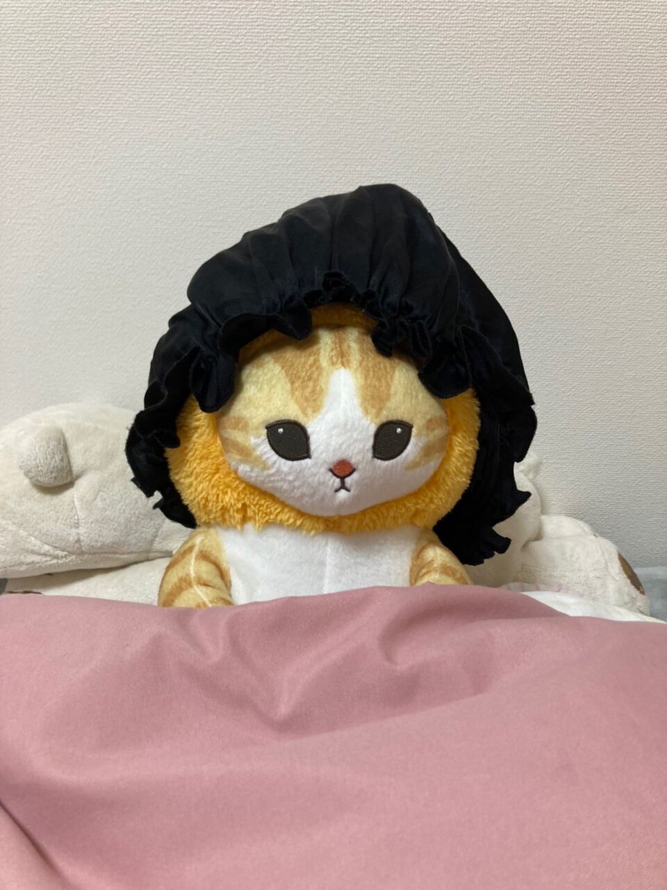 ちなみに黒いのは、髪の毛が傷まないように、いつも寝るときにつけているヘアキャップ