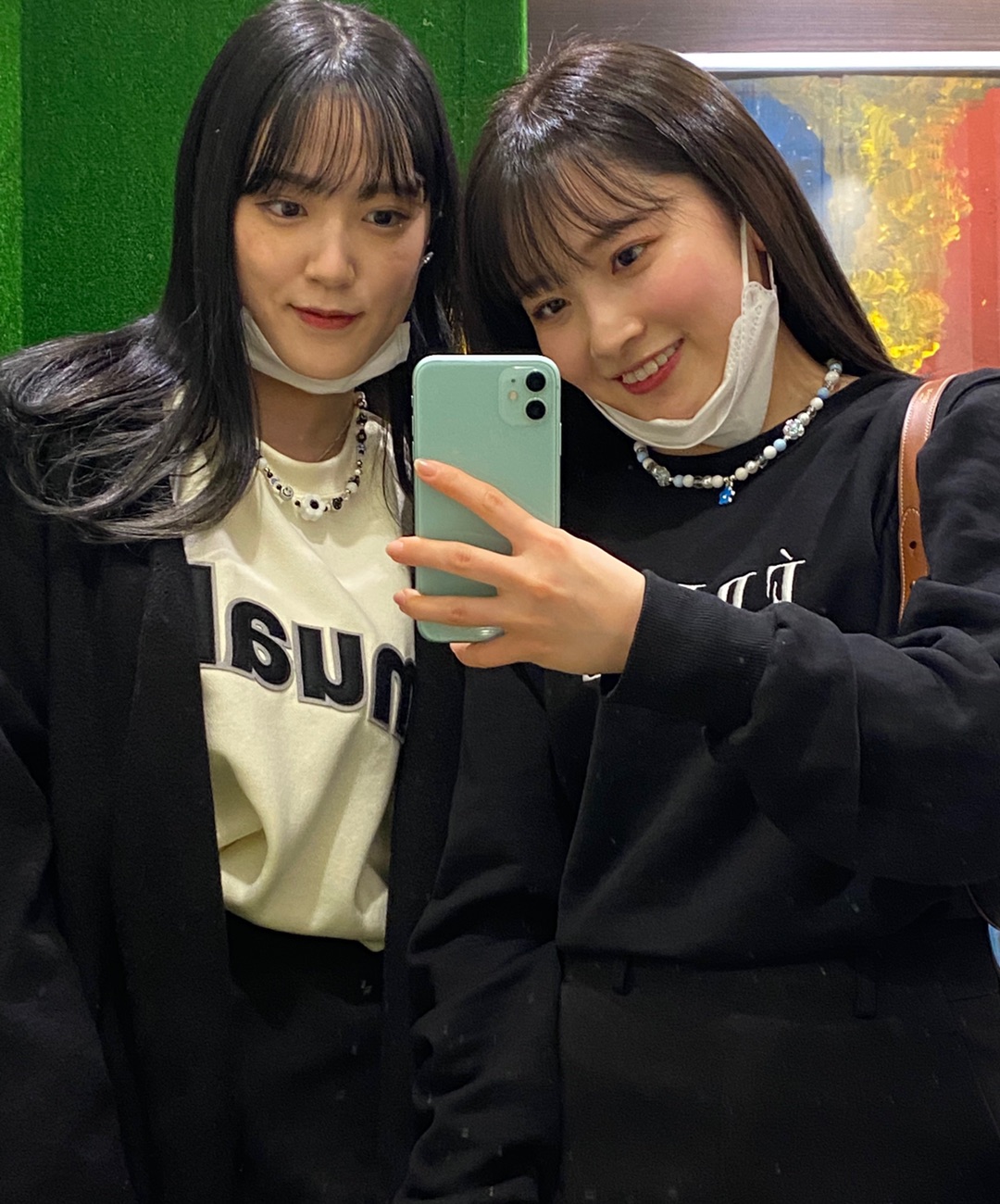(写真撮る時だけマスク外してます)ネックレスを作ってみたんですけど、