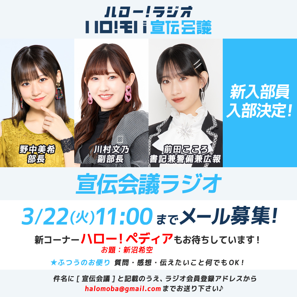 番組内で発表します📣3/22(火)AM11:00まで、メールを大募集📨
