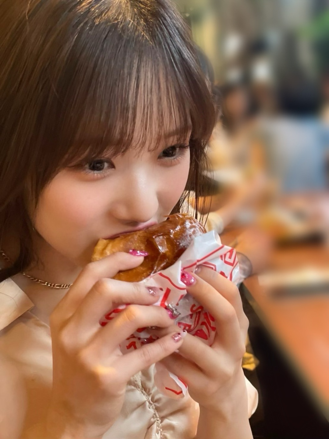 橋迫鈴、特大ピザを前に笑顔