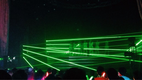 今回の演出は、まずレーザーをたくさん使ったもの。1曲目が特にわかりやすかったと思います。