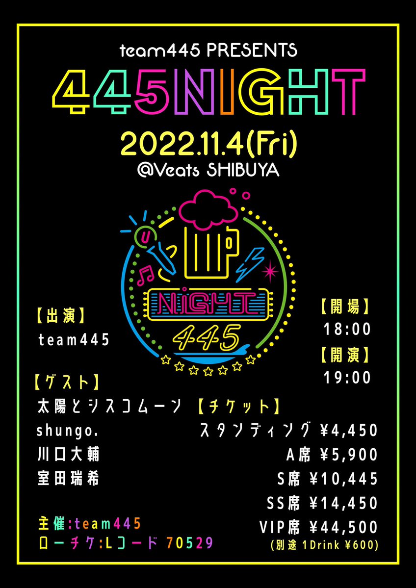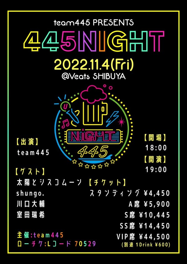 太陽とシスコムーン、元アンジュルム室田瑞希ゲスト出演のYOSHIKO先生主催イベント『445Night』のVIP席料金が…