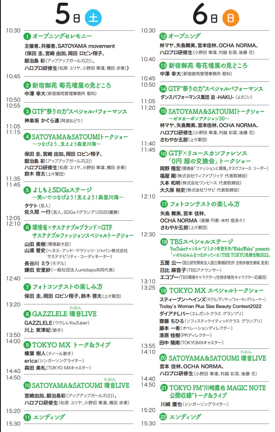 どんなプログラムがあるか、ぜひチェックしてください💛💚https://t.co/9oTqhvHc3W #グリーンチャレンジデー #ステージ #タイムテーブル pic.twitter.com/MdlK5U2BKd— GTFグリーンチャレンジデー2022 in 新宿御苑 (@GTFsince2002) October 28, 2022