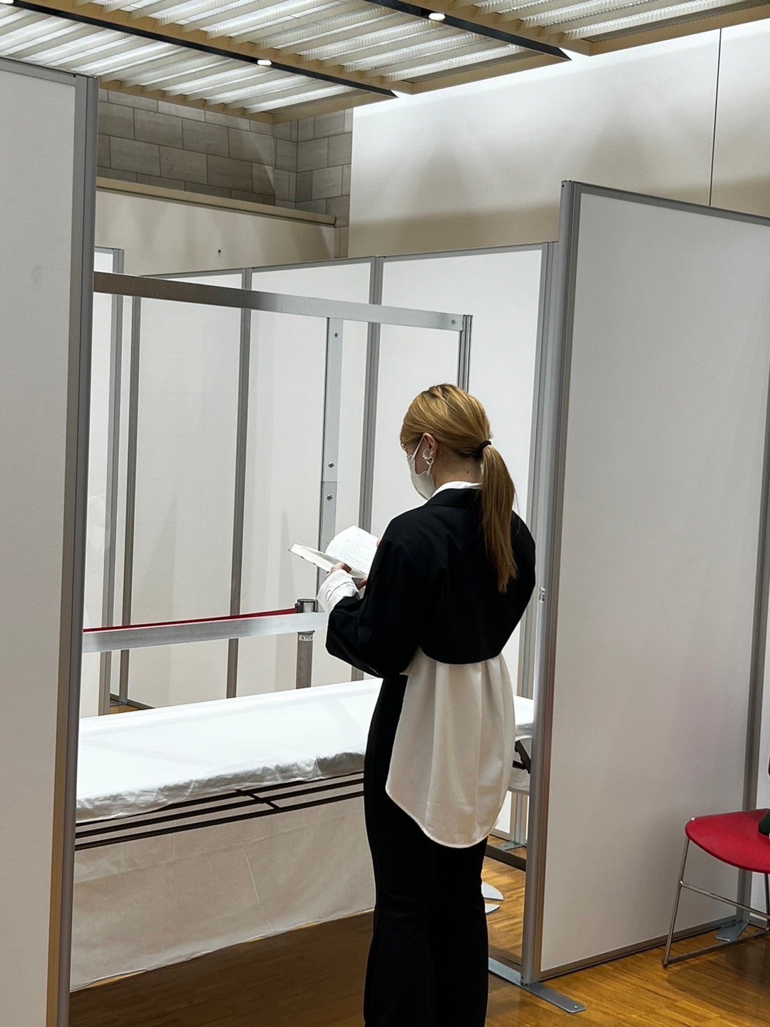 空き時間でずっと読んでたんだけど、今日私は立ってる時も座ってる時もどこかしらを鍛えたり姿勢を正しながらやってたんですけど、そしたらこんな写真撮られてました笑