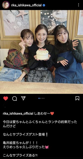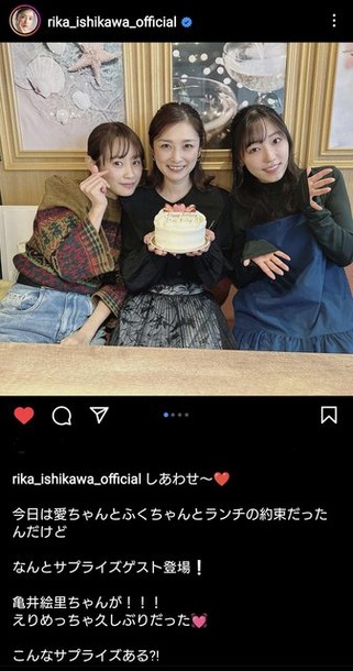 毎月恒例。石川さん.愛ちゃん.ふくちゃんの食事会に亀井えりりんサプライズゲスト キタ━(゜∀゜)━!