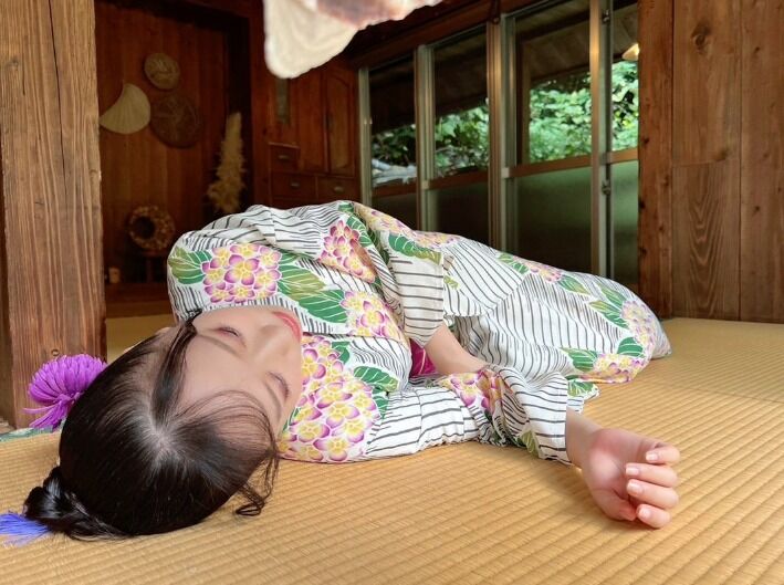 パジャマ姿の井上はるさん