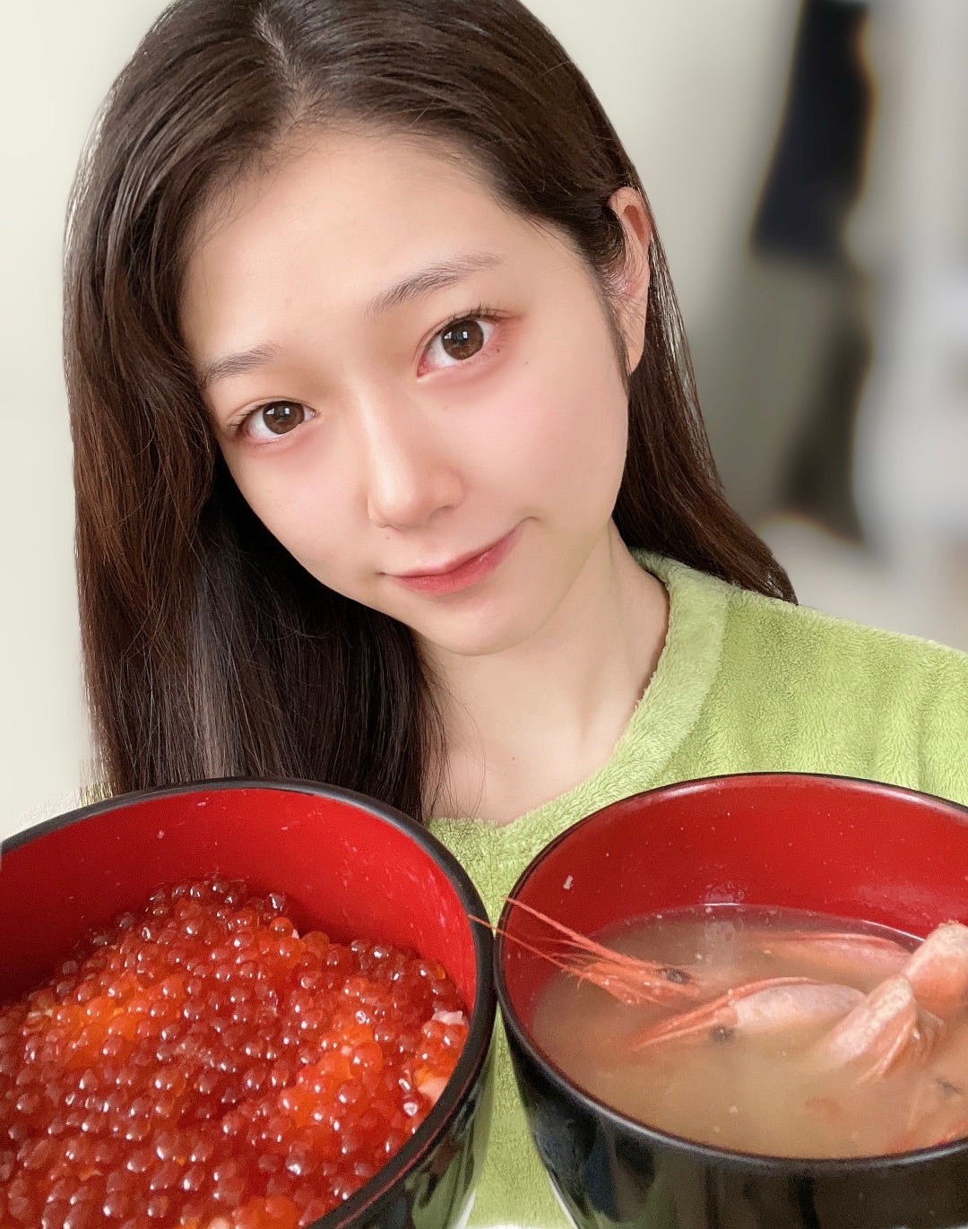 【つばきファクトリー】朝からパパが作ってくれたイクラ丼と海老の味噌汁を食べて実家を満喫する谷本安美