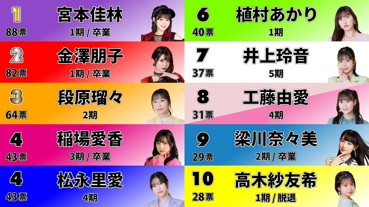 【悲報】Juice=Juice楽曲大賞で高木さゆべぇが元リーダーと現役を上回り10位に入ってしまう