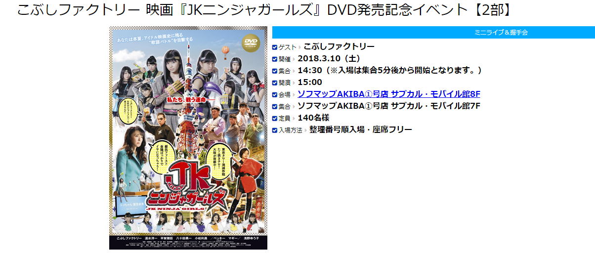 ◆こぶしファクトリー 映画『JKニンジャガール』DVD発売記念握手会
