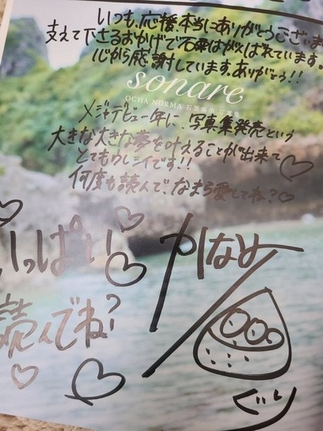 OCHA NORMA石栗奏美さんの1st写真集「sonare」のサイン本書き込み量がハロプロ史上最多・最高を更新