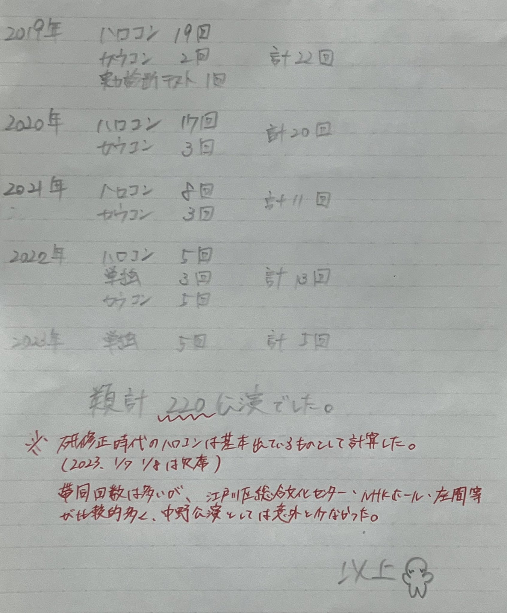ヲタク「中野サンプラザ公演にて、一岡伶奈さんが私が中野サンプラザに立った回数が何回なのか気になると言っていたので調べてみました」