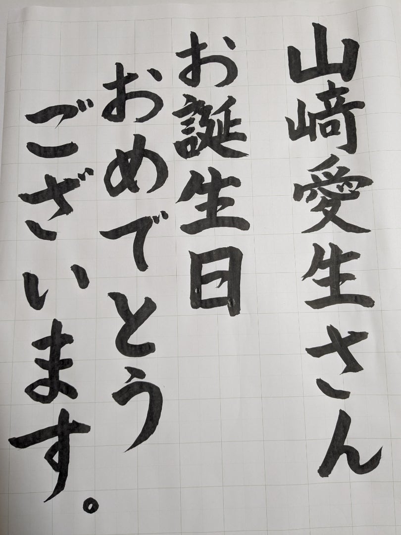【書道】井上春華「大きな紙に書くことがないので少し手がふるえたのですが書いてみました!山崎愛生さんお誕生日おめでとうございます」